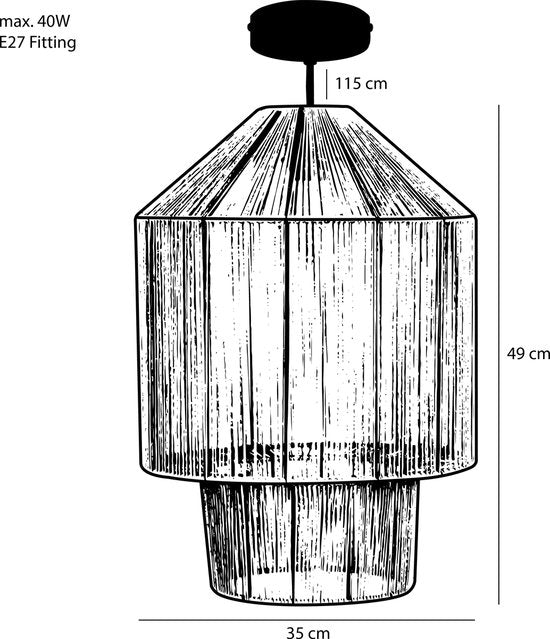 La lampe suspendue Elsa de Mica Decorations est un bel ajout à votre intérieur. Le cadre de l'abat-jour est de couleur noire et est fabriqué en métal robuste. L'abat-jour en jute naturel brun clair crée une ambiance chaleureuse. Grâce à son design moderne, cette lampe s'intègre parfaitement dans un intérieur moderne. La lampe suspendue Elsa est disponible en plusieurs variantes. Ce modèle a une hauteur de 49 cm et un diamètre de 35 cm et convient à une source lumineuse E27 de 40 watts maximum (non incluse). La longueur totale du câble est de 130 cm, ce qui vous permet de suspendre la lampe suspendue où vous le souhaitez. Combiner plusieurs lampes suspendues Elsa de Mica Decorations est également une option atmosphérique.