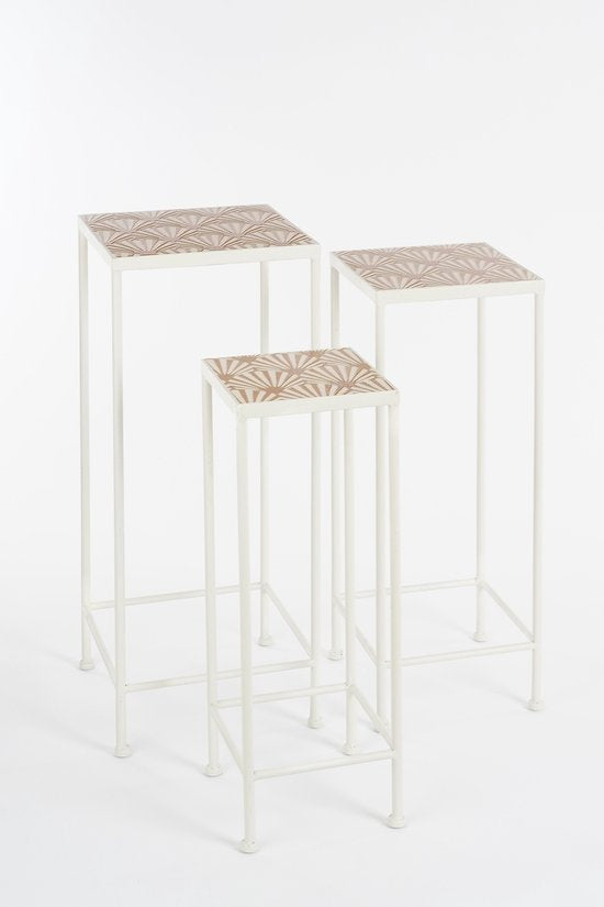 Mica Decorations Table d'appoint d'extérieur Odile - Lot de 3 - L28 x L28 x H67 cm - Métal - Marron, Blanc