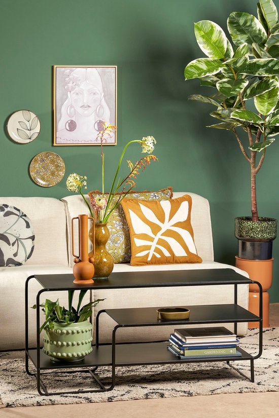 La table basse Jules de Mica Decorations attire l'attention par son design unique avec trois plateaux de hauteur différente reliés les uns aux autres. Ce meuble est fabriqué en métal robuste et présente une élégante finition noire. Cela ne crée pas seulement un look ludique, mais assure également une grande fonctionnalité ! La table d'appoint moderne a une longueur de 110 cm, une largeur de 38 cm et une hauteur de 50 cm. Elle constitue également un complément élégant qui peut être parfaitement combiné avec d'autres tables de la collection Jules de Mica Decorations.