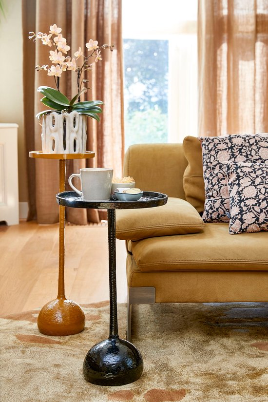 La table d'appoint Colin de Mica Decorations est une table polyvalente ! Fabriquée en aluminium recyclé, elle a une hauteur de 58 cm et un diamètre de 34 cm. La table noire est dotée d'un large plateau rond et d'un manche élancé, ce qui permet de la déplacer sans effort et d'une seule main à côté d'une chaise, d'un canapé ou même dans la salle de bain. Idéale pour avoir son café ou un livre à portée de main ! L'aluminium présente une texture rayée subtile qui contribue à l'élégance de l'ensemble. Combinez cette table d'appoint avec d'autres tables d'appoint Colin de Mica Decorations pour un look ludique !