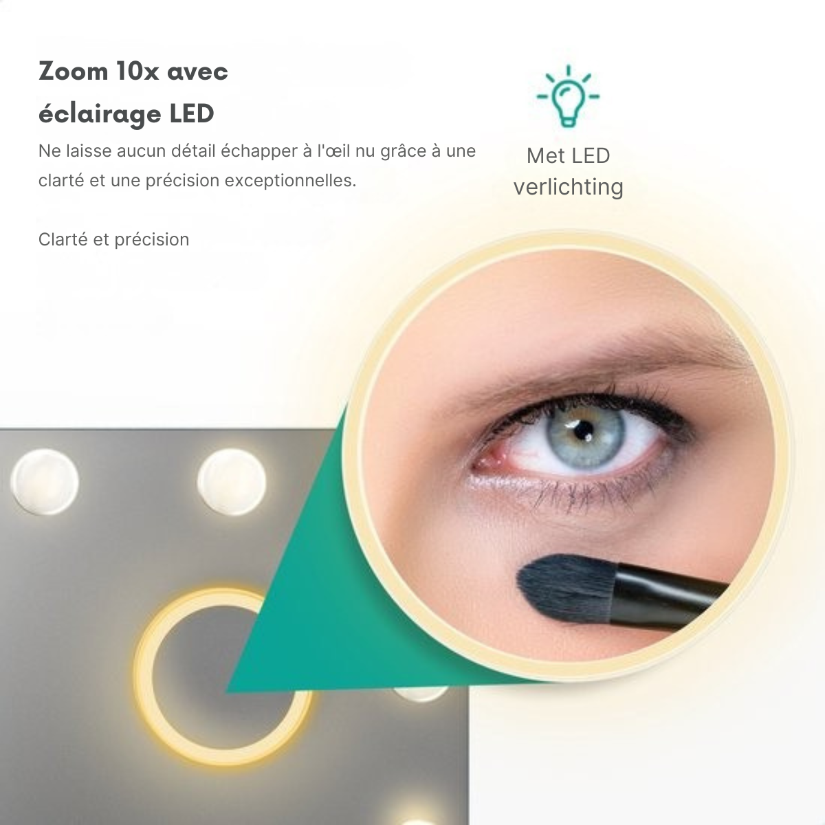 - Miroir grossissant LED 10x détachable