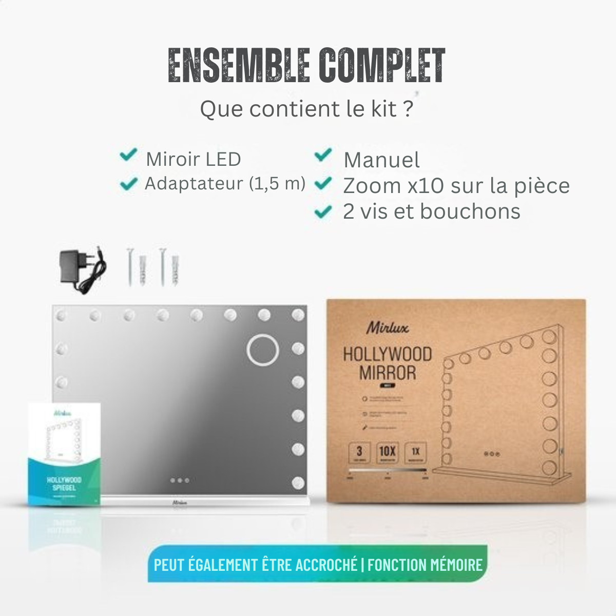Expérimentez la différence chaque jour avec la qualité haut de gamme, avec le Miroir Hollywood Mirror, chaque jour devient l'occasion de rayonner de confiance et de style.