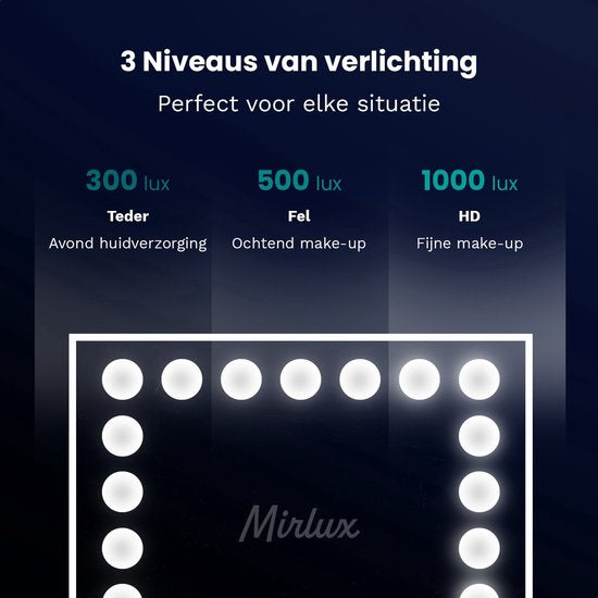 Avec le Mirlux Hollywood Mirror, vous profiterez d'un éclairage optimal, d'une précision professionnelle et d'une élégance intemporelle - tous les jours.