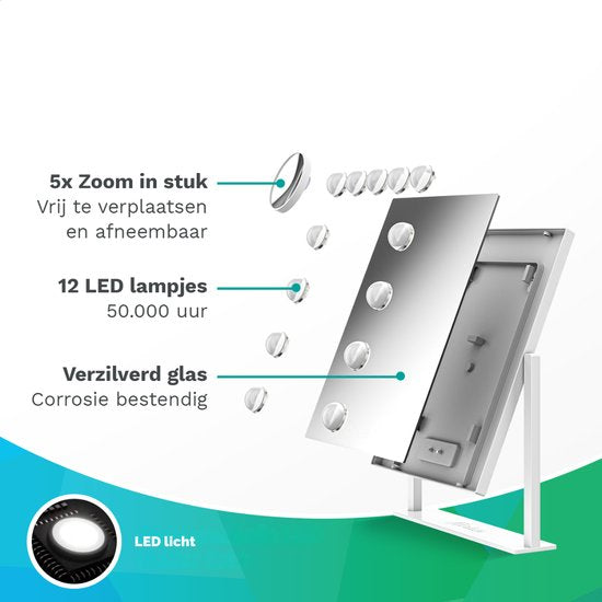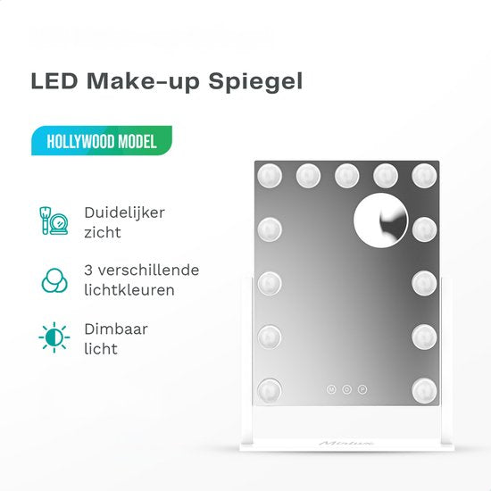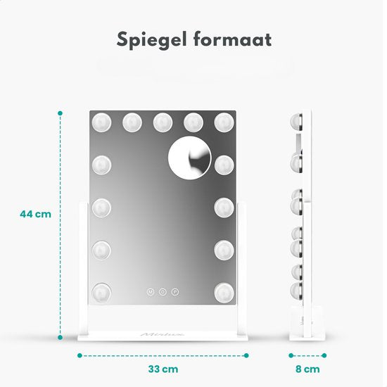 Mirlux Make Up Hollywood Mirror with Lighting (44x30cm) - Vision - Ampoule LED dimmable - 13 lampes - Blanc