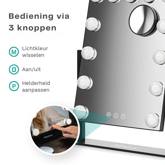 Mirlux Make Up Hollywood Mirror with Lighting (44x30cm) Vision - Dimmable LED Bulb Light - 13 Lamps - Black
