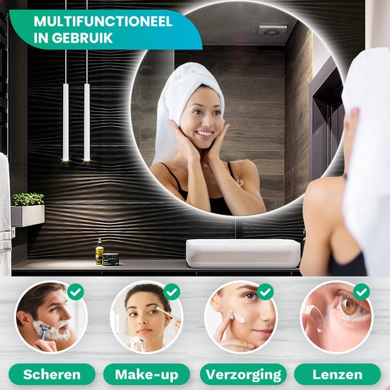 Mirlux Miroir de salle de bain - Rond 60 cm - Eclairage et chauffage LED - Miroir de douche anti-buée - Sans cadre