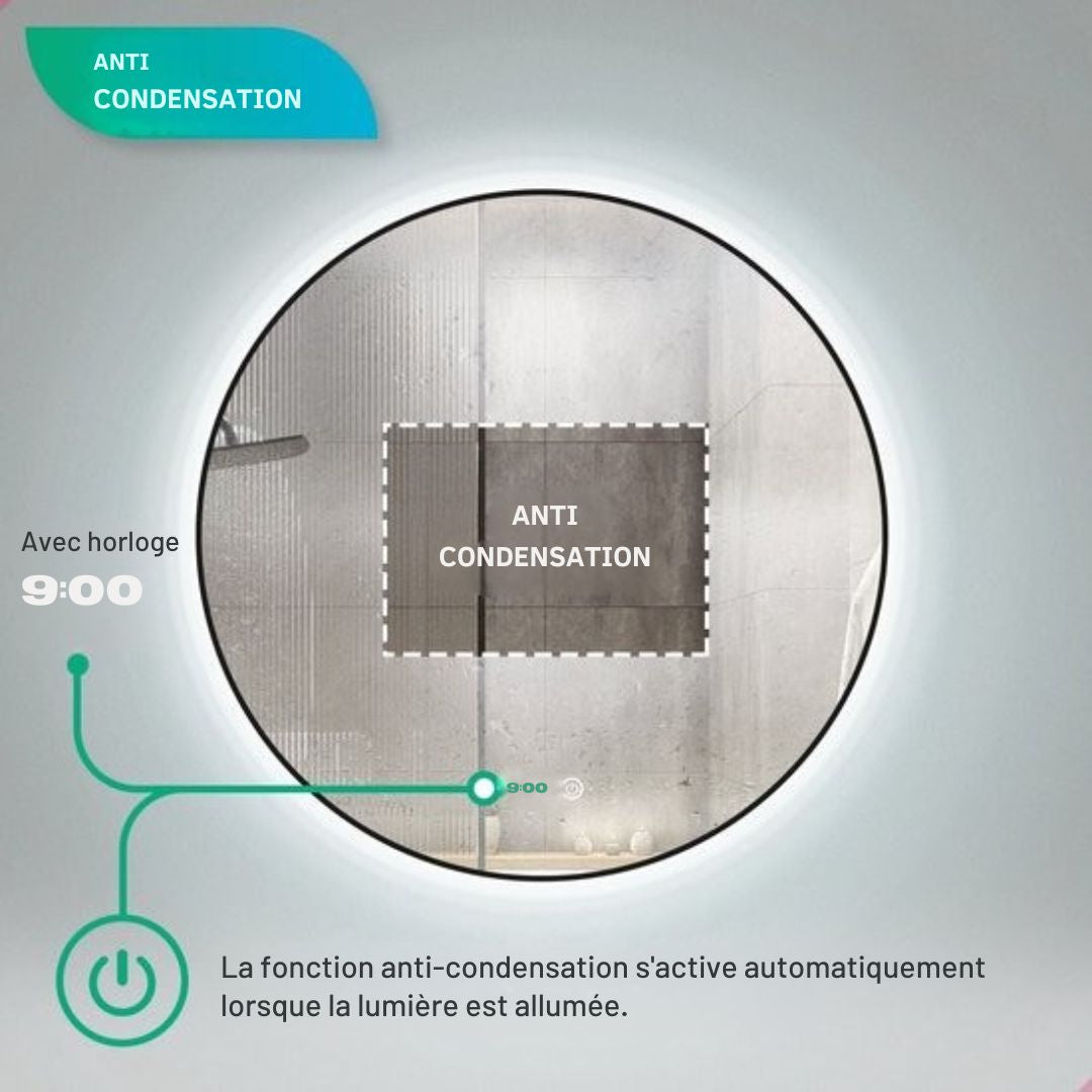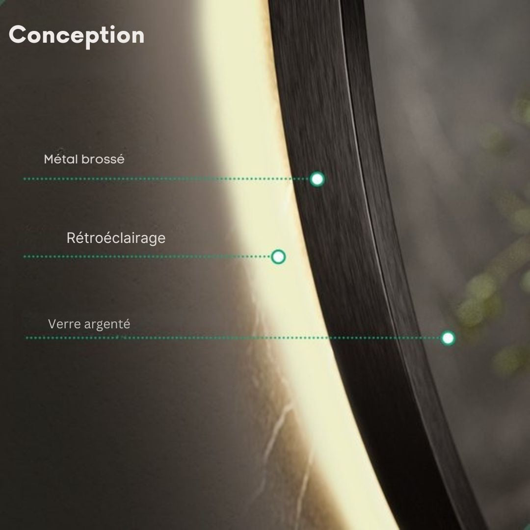 Miroir de salle de bain - Mirlux - avec éclairage LED et chauffage - anti-condensation - 60CM - Noir mat