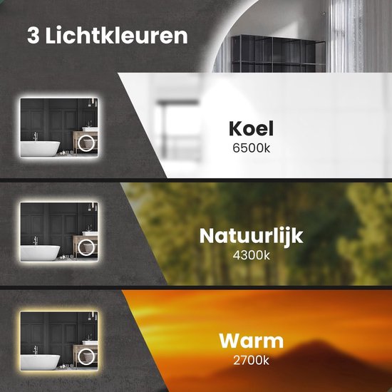 - L'ensemble du miroir est inoxique et IP44 résistant aux éclaboussures.