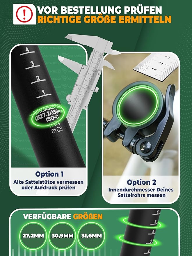 La tige de selle est disponible en 3 tailles et dispose d'une indication de hauteur pratique pour un réglage précis. L'installation est simple et rapide, sans outils spécialisés.