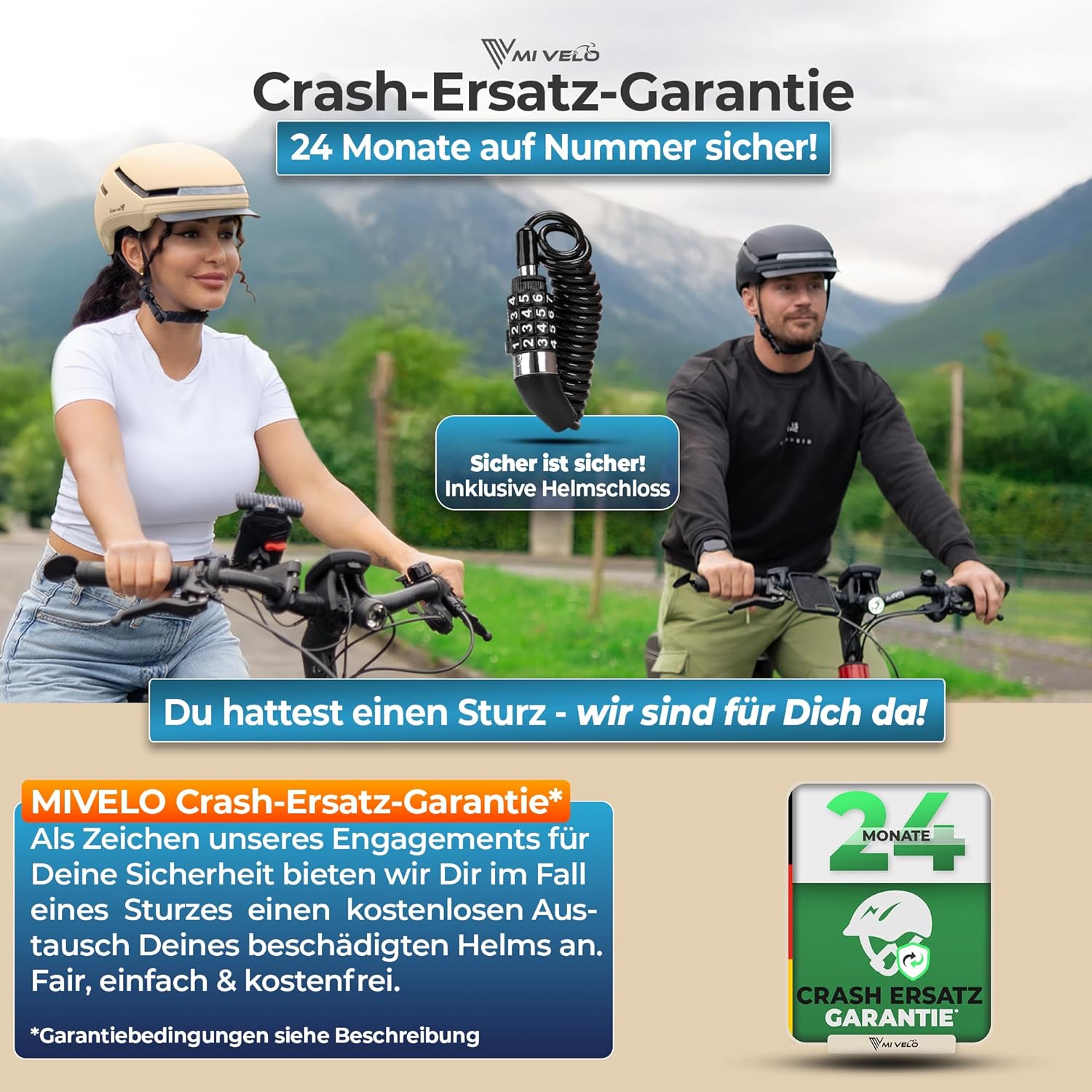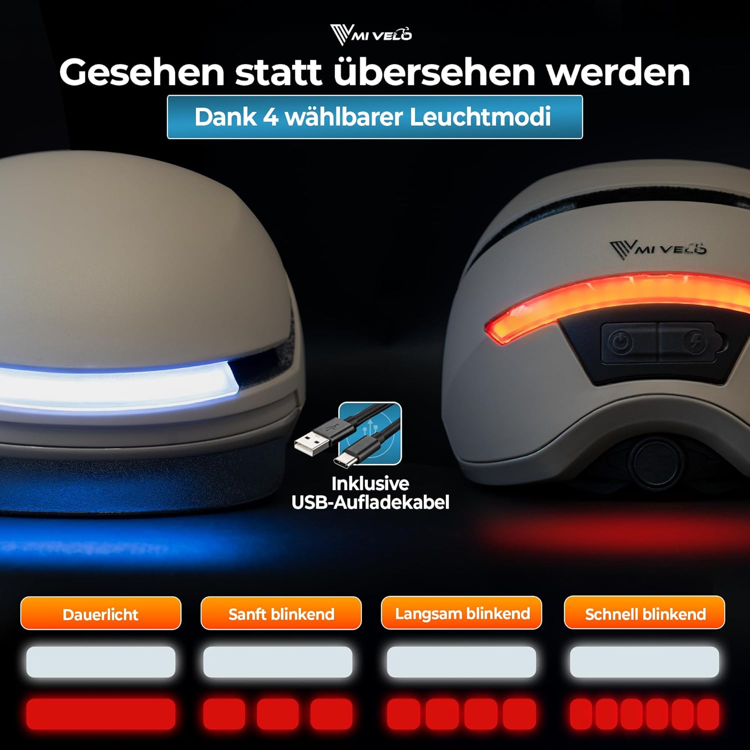 Mivelo Casque de vélo unisexe NOVA - Avec lumière - Certifié NTA jusqu'à 45km/h - Beige - Taille M (54-58 cm)