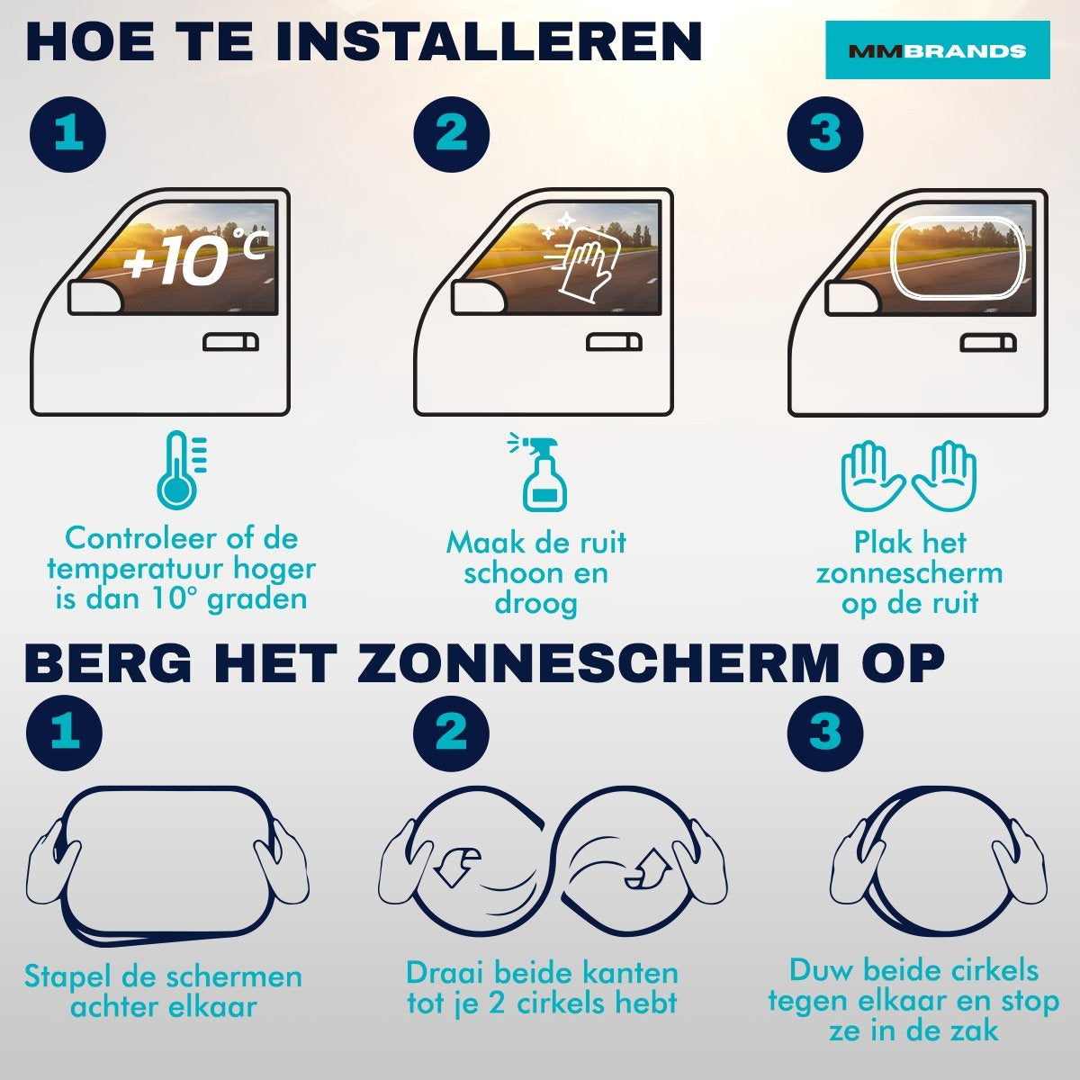 2 Pare-soleil pour voiture MM Brands - latéraux - ventouse - 51 x 31 cm