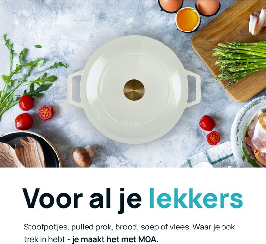 MOA Casserole en fonte - 5,7L - Pour toutes les sources de chaleur y compris l'induction - Avec couvercle - Ø 26cm - Revêtement antiadhésif - Blanc