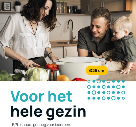 La cocotte en fonte MOA C26B, avec son diamètre de 26 cm et sa grande capacité de 5,7 litres, offre suffisamment d'espace pour préparer des repas pour toute la famille. Que vous envisagiez de préparer un savoureux ragoût de bœuf ou de faire mijoter des légumes, la...La cocotte présente des dimensions idéales pour différents types de plats. Sa grande capacité vous permet de cuisiner de plus grandes portions, ce qui est parfait lorsque vous recevez des invités ou si vous prévoyez de cuisiner plusieurs jours à l'avance.