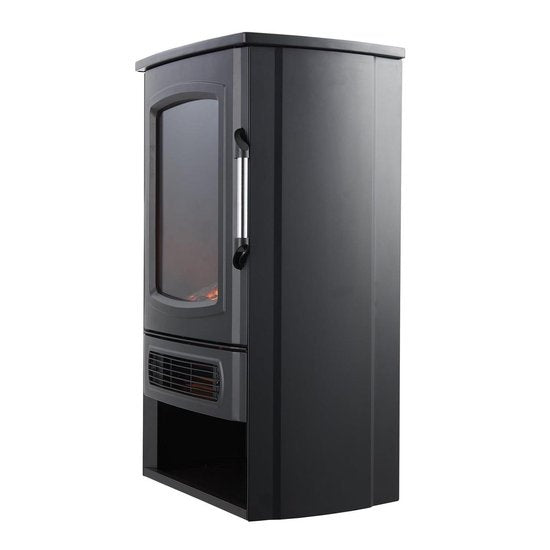La cheminée est élégamment finie en noir de fonte et a une taille compacte de 45 × ; 32 × ; 74 cm, ce qui lui permet de s'intégrer dans presque toutes les pièces. Il y a de l'espace en dessous pour placer des bûches décoratives, complétant ainsi l'aspect d'une vraie cheminée.