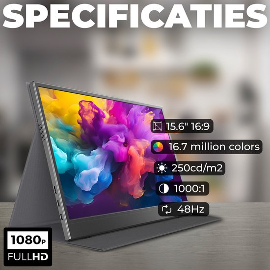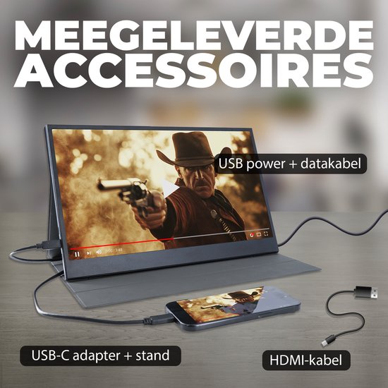 Moniteur portable Denver - Full HD - 15,6" - Moniteur portable - Étui en cuir - HDMI - USB-C - PMO15604