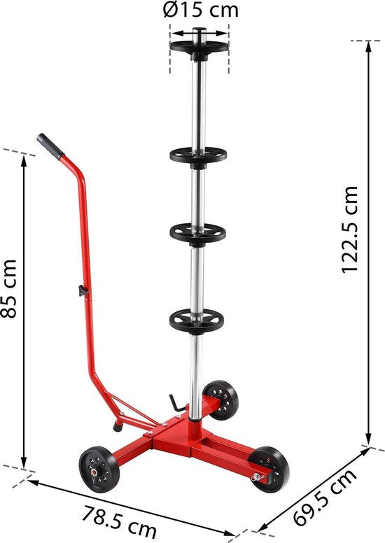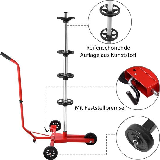 Avec cet arbre à jantes pratique, vous pouvez ranger votre jeu complet de pneus de manière professionnelle, peu encombrante et sûre. L'arceau mobile protège vos pneus d'été et d'hiver de la pression et des déformations qui en résultent. Chaque pneu est sans contact soutenu dans son propre support.