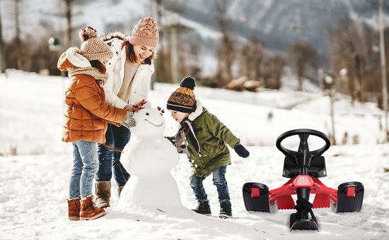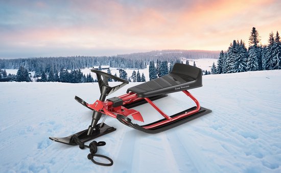 Cette luge rapide et durable est dotée d'un corps métallique robuste. Le frein à pied anti-blocage offre une sécurité optimale. Même sur les pistes douces et peu fréquentées, le Snow Rider est un excellent choix : contrairement aux luges traditionnelles, les longs rails assurent un excellent maintien et une luge rapide, même dans les couches de neige plus profondes.