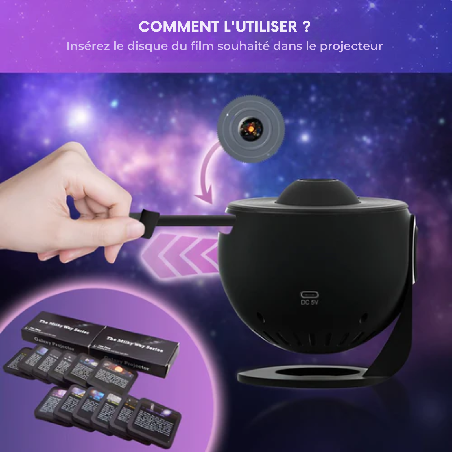 12 projections fascinantes : Choisissez parmi des galaxies, des planètes et bien plus pour transporter votre pièce dans l'univers.