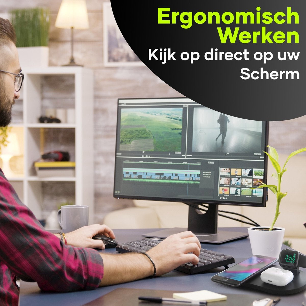 Vous connaissez sans doute cette sensation que votre table de chevet ou votre bureau est rempli de cordons, faisant de votre espace de sommeil ou de travail un grand chaos. Vous voulez recharger vos appareils avant de vous coucher, mais vous n'avez pas assez de chargeurs pour tout recharger. Avec cette station d'accueil, vous pouvez facilement charger tous vos appareils quotidiens de manière organisée.