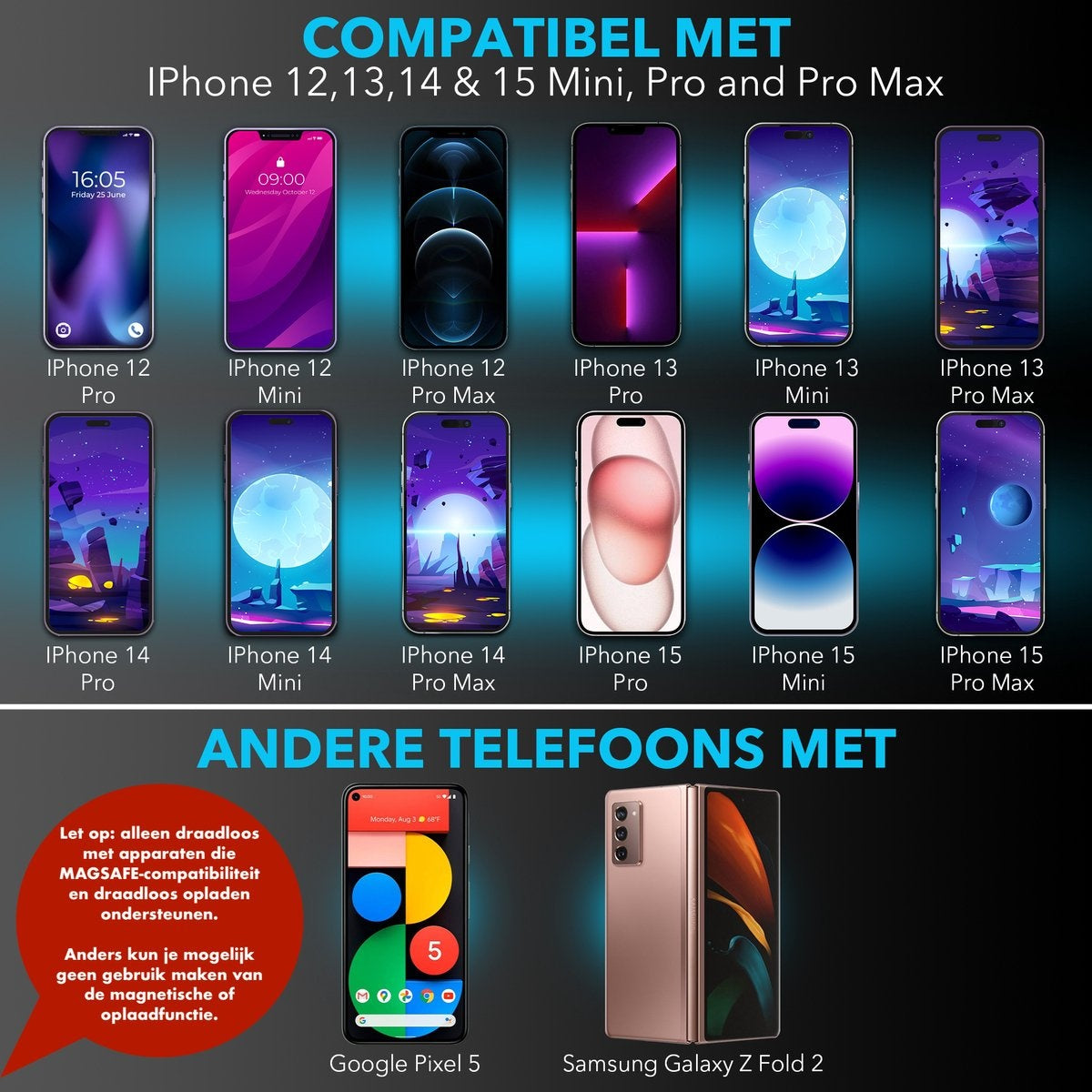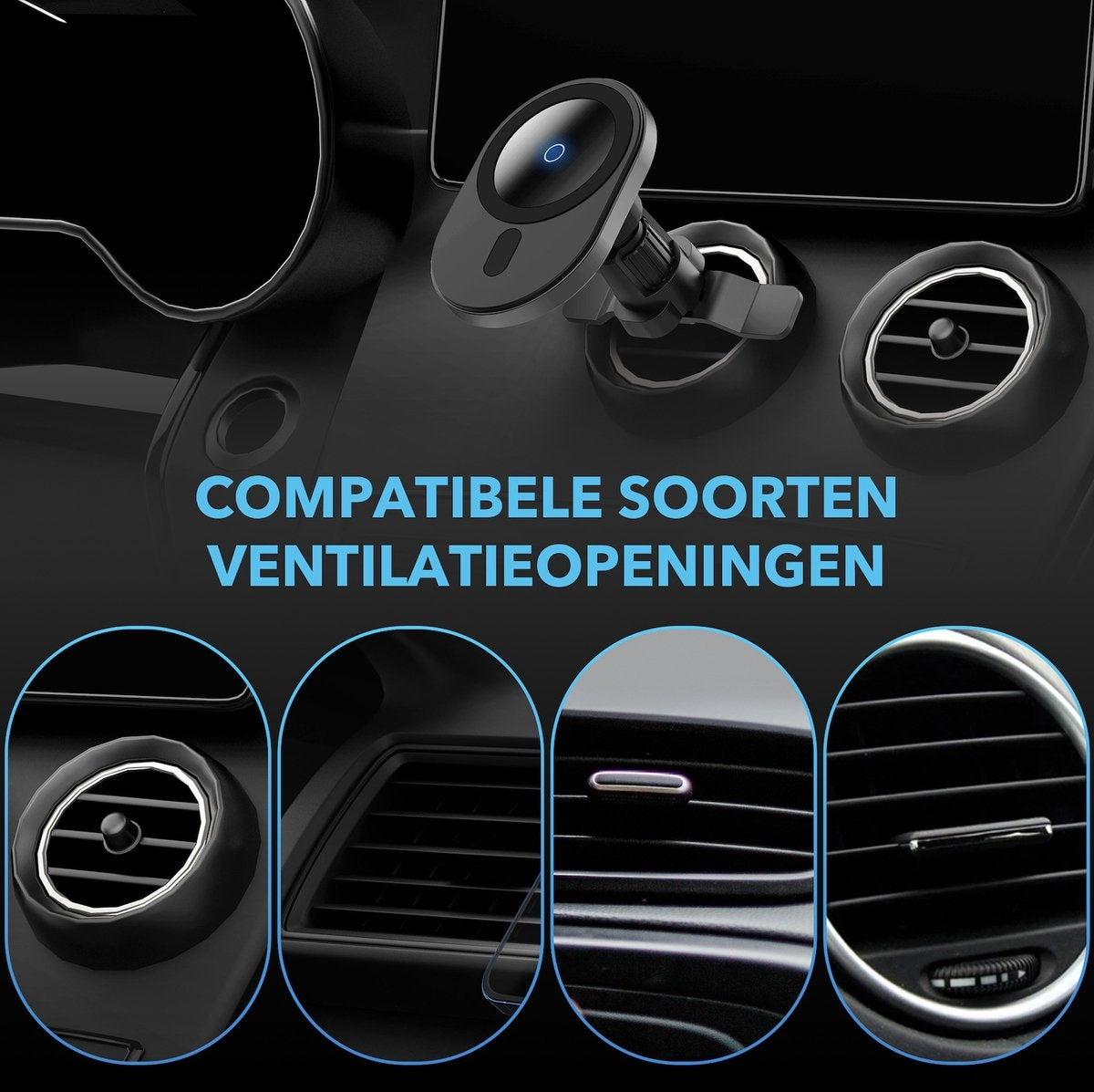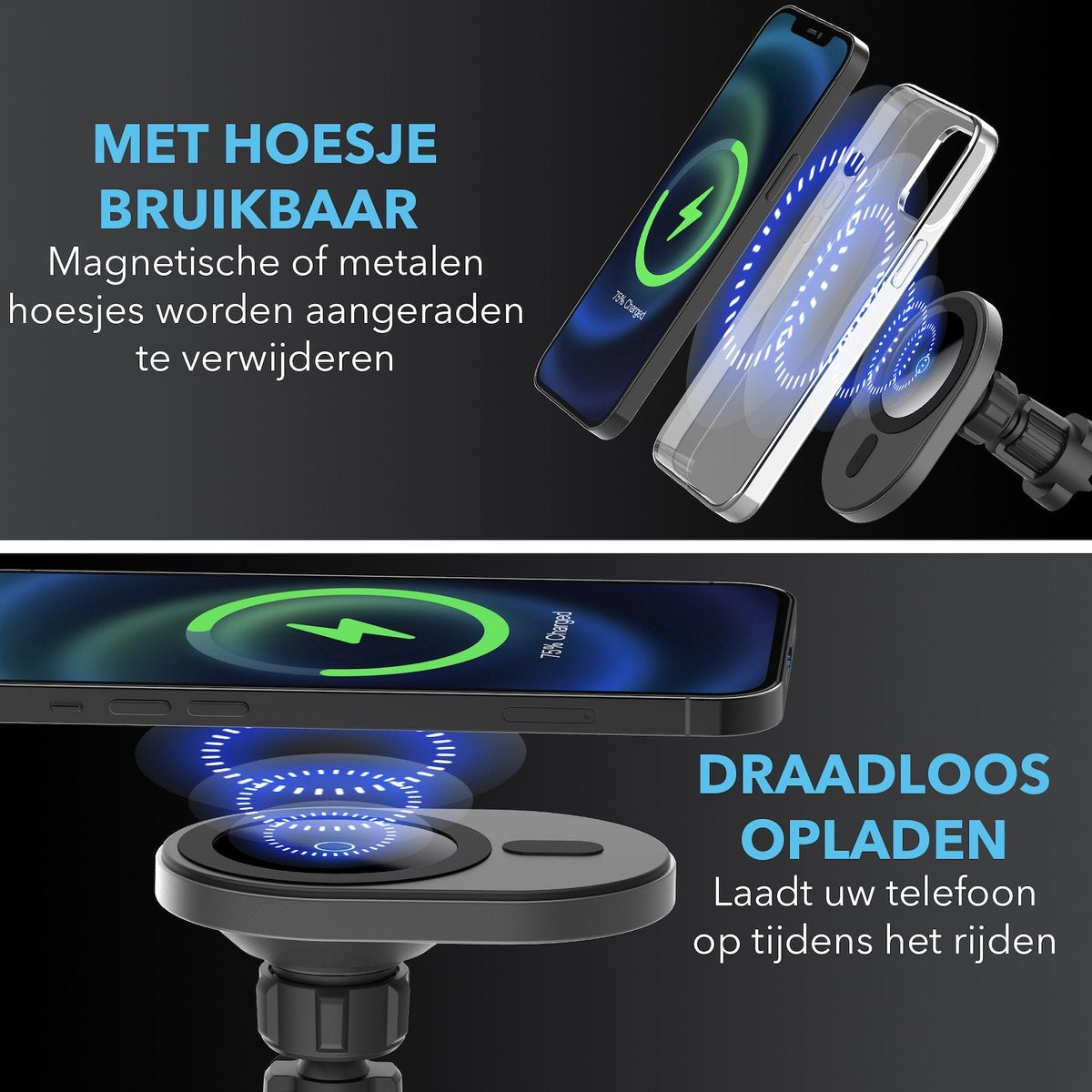 Avec le MW® MagSafe Phone Holder pour la voiture, vous pouvez facilement naviguer les mains libres, charger votre téléphone et prêter attention à la route. Ce support de téléphone robuste est à 360 degrés et le chargement rapide sans fil garantit que votre batterie est chargée en un rien de temps. Vous pouvez ainsi continuer à utiliser des applications utiles en toute sécurité pendant que vous conduisez. L'autocollant MagSafe est désormais inclus, ce qui vous permet d'utiliser ce support de téléphone sans téléphone à fonction magnétique.