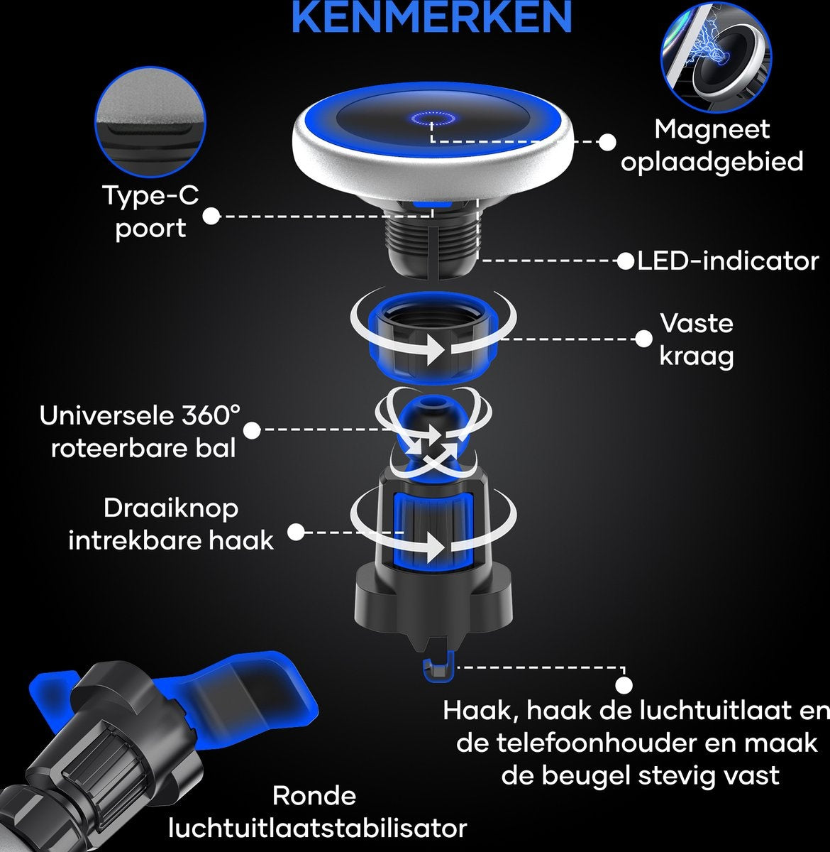 MW® MagSafe Autohouder - GSM Houder Auto - Voor iPhone 12, 13 & 14 - Magnetische Telefoonhouder Auto - MagSafe Autolader - Telefoonhouders Auto Magnetisch