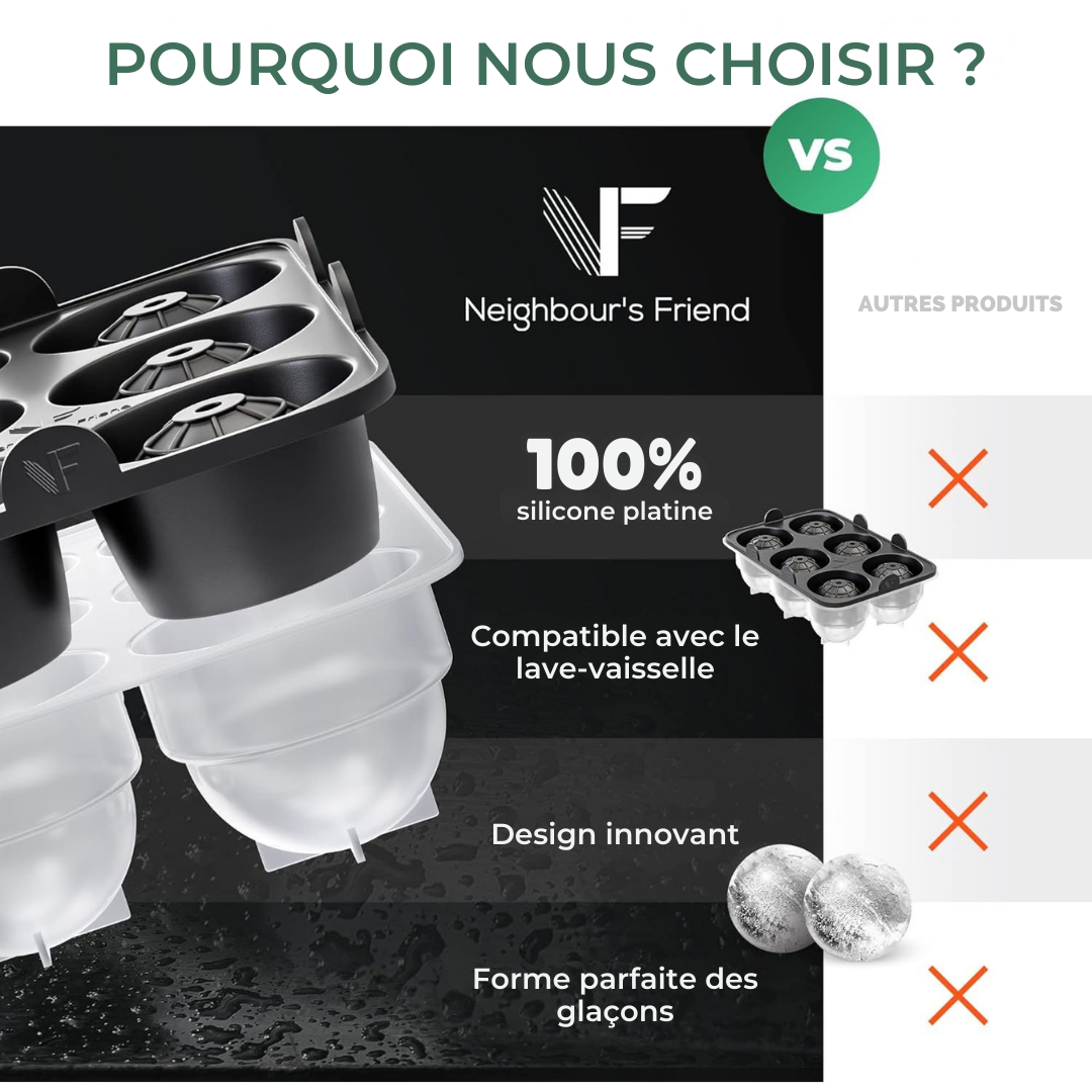 Pour un whisky du soir, un cocktail créatif entre amis ou une idée cadeau élégante, le moule à boules de glace Neighbour’s Friend allie esthétique, fonctionnalité et qualité. Il transforme chaque boisson en une expérience raffinée dont on se souvient.