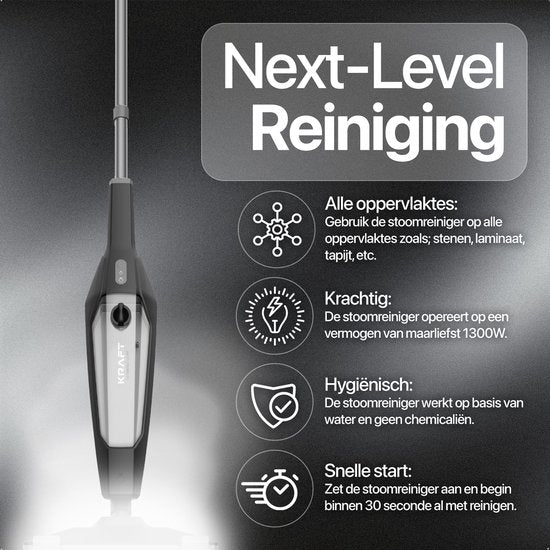 KRAFT Nettoyeur à vapeur - Nettoyeur de taches - Nettoyeur à vapeur portatif - 10 accessoires et 2 chiffons à vapeur