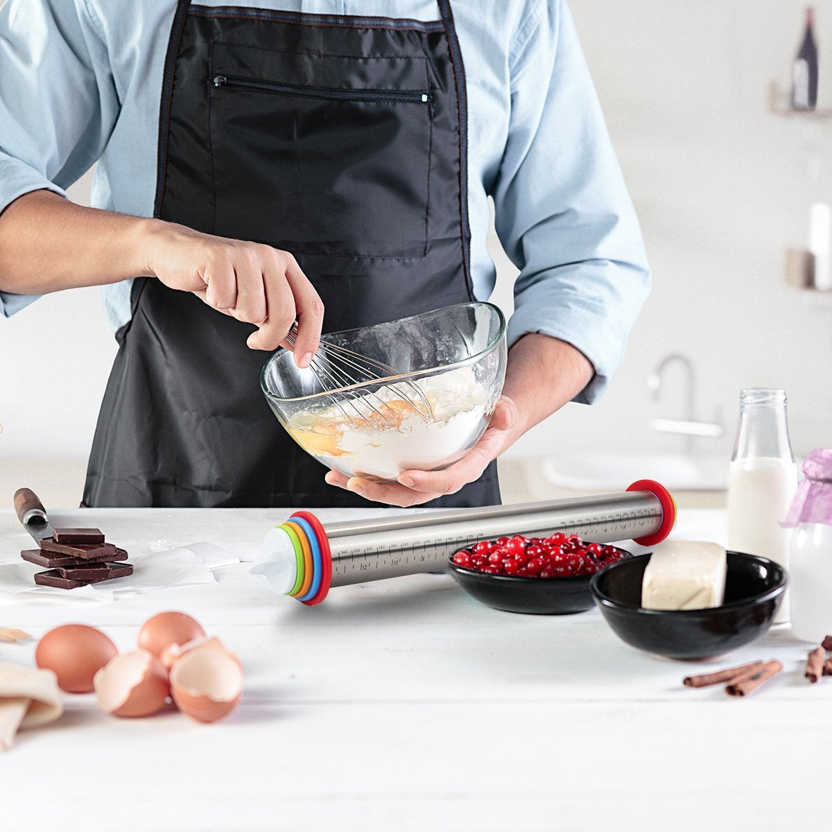 Il est toujours difficile d'obtenir la bonne épaisseur de pâte. Parfois, elle est trop épaisse, d'autres fois, elle est beaucoup trop fine. Avec le set de rouleaux à pâtisserie Nimma, ce problème est résolu en un rien de temps ! Le rouleau à pâtisserie réglable est idéal pour préparer des pizzas, des biscuits, des gâteaux et bien plus encore !