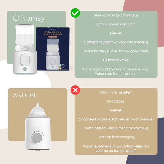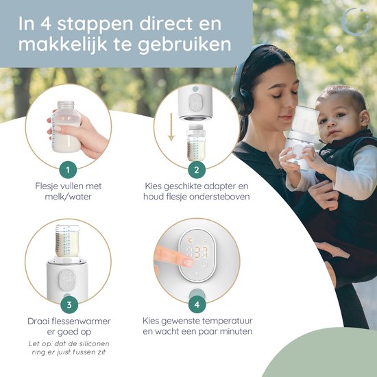 Chauffe-biberon portable Numsy - Sans fil - 6 adaptateurs inclus - 4 niveaux de température