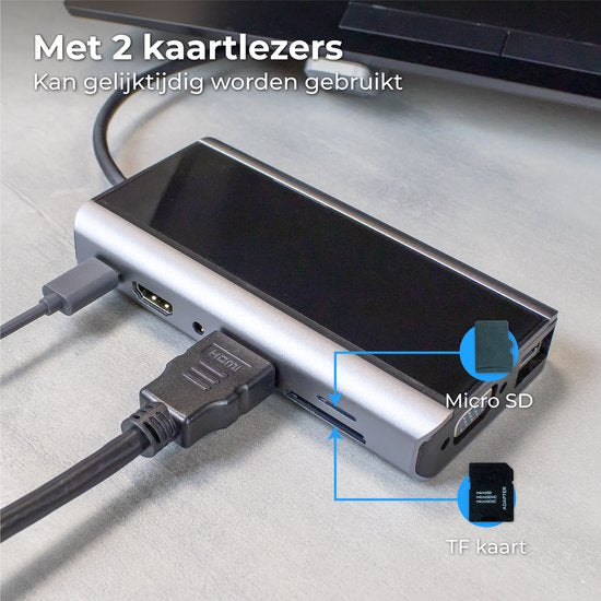 Nuvance - 13 in 1 Docking Station Laptop - USB C Hub - USB Splitter - USB Hub 3.0 - HDMI, VGA, Network, AUX et TF/SD - Docking station