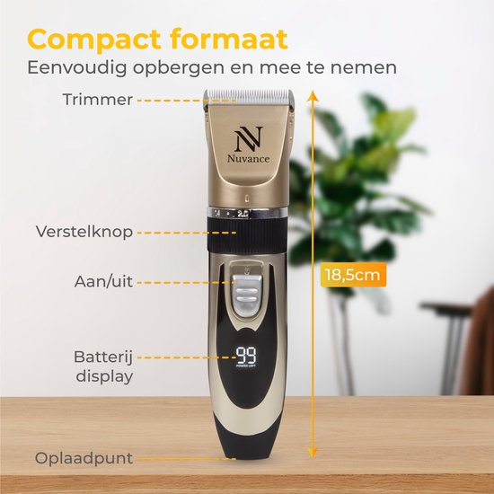 Nuvance - Tondeuse pour chien - set - silencieux - sans fil - pour chien et chat - Tondeuse professionnelle pour chien