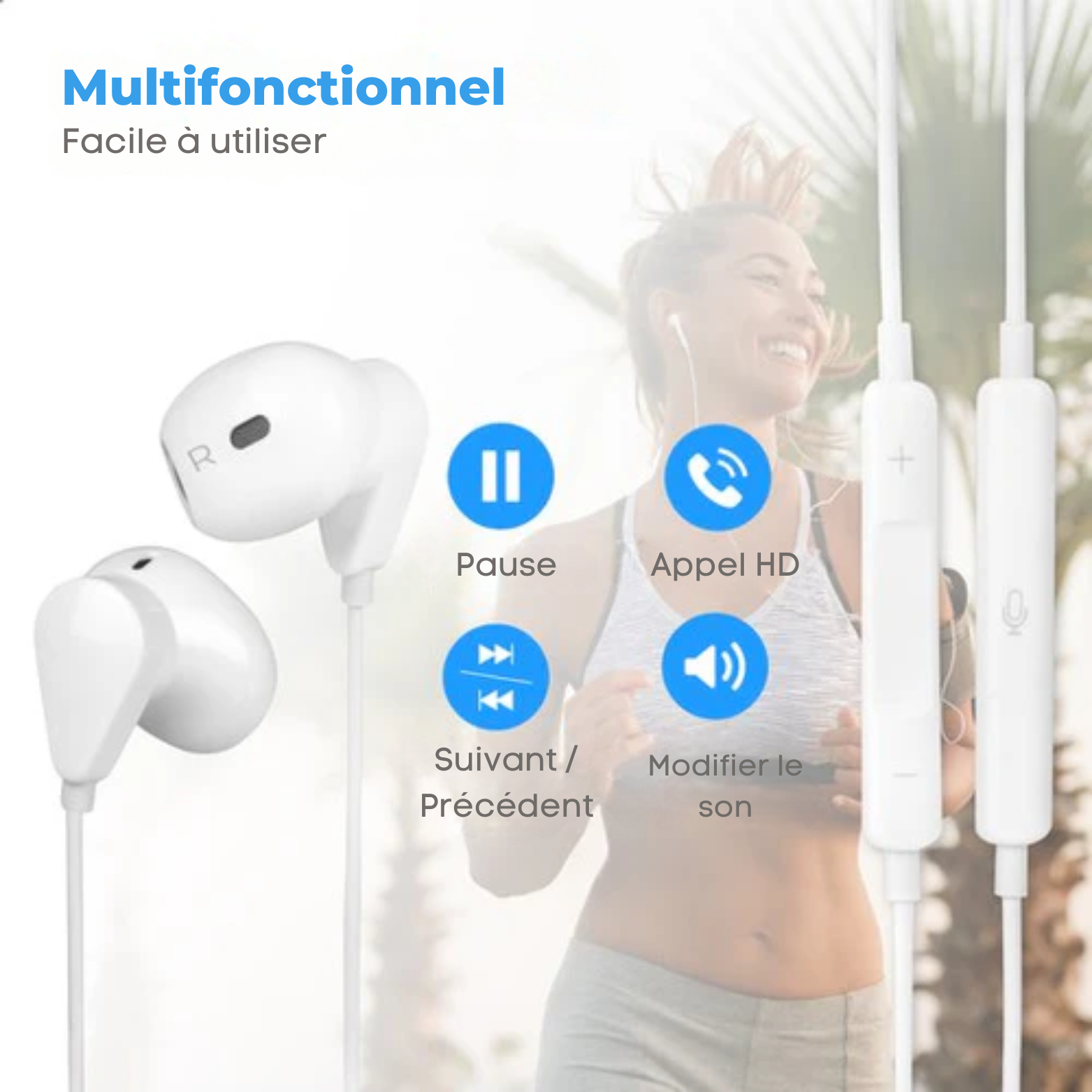 Écouteurs intra-auriculaires avec microphone et commandes intégrées