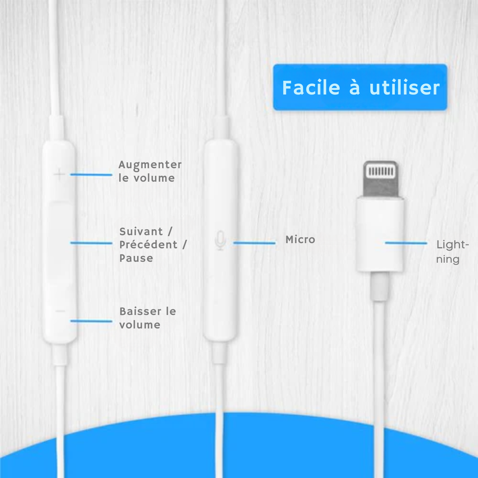 - 1x Écouteurs filaires adaptés à la connexion lightning.