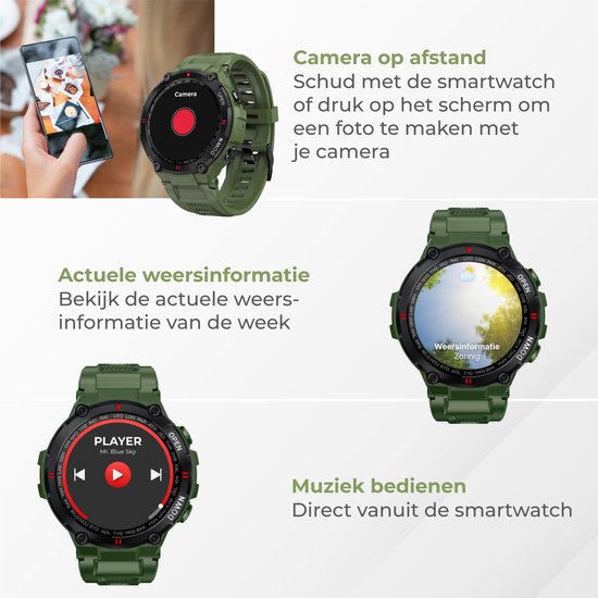 Cette smartwatch est dotée d'un bracelet en silicone confortable et est équipée de ...Différents cadrans numériques font de cette smartwatch l'outil idéal pour une utilisation quotidienne et des activités aventureuses. La smartwatch est compatible avec Android 4.4 ou supérieur et iOS 8.0 ou supérieur. La montre possède de nombreuses caractéristiques et fonctions, notamment un moniteur précis de la fréquence cardiaque et de la tension artérielle, un podomètre, une jauge de saturation et un moniteur de sommeil. Lorsque vous achetez la montre intelligente, vous avez également accès à l'application qui l'accompagne. Cette application vous permet d'obtenir des statistiques claires sur vos activités.