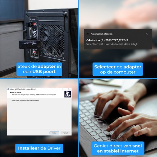 Pas de réglages complexes pour cette antenne WiFi ; il suffit de brancher l'adaptateur et vous êtes immédiatement prêt à vous connecter. Grâce à l'installation plug-and-play, vous aurez accès à un WiFi ultra-rapide en quelques secondes, sans avoir besoin de connaissances techniques.