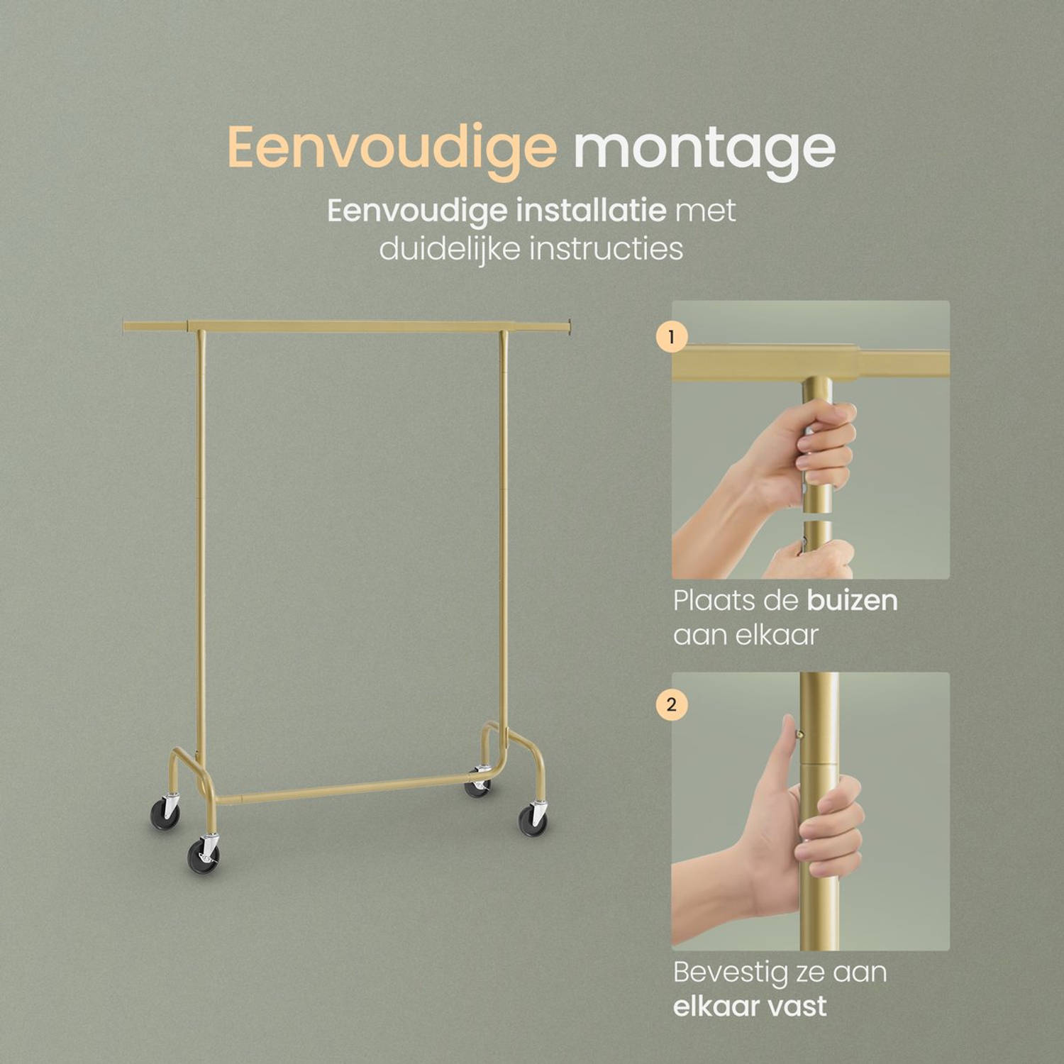 O'DADDY® Porte-vêtements sur roulettes - Capacité jusqu'à 130 kg - acier inoxydable - 45 x 150 x 162,8 cm - Or