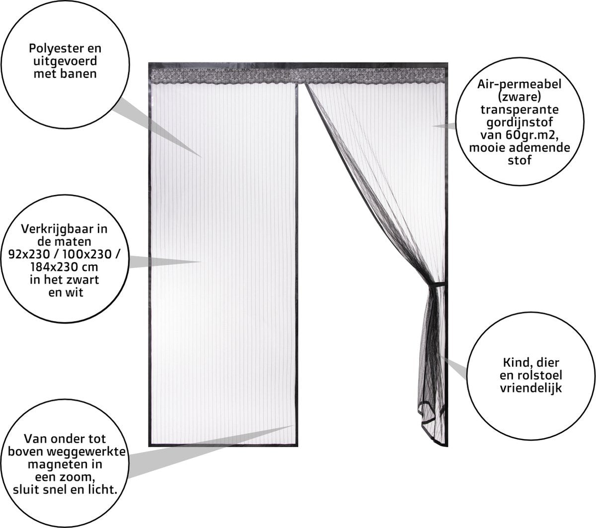 O'DADDY Deurgordijn Deluxe FIBER - Magnetisch Vliegengordijn - Voor Nieuwbouw en Standaard Deuren - Eenvoudige Installatie - Zwarte Hor - 184x230 cm