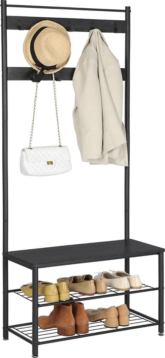 O'DADDY® porte-manteau vertical - porte-manteau avec porte-chaussures - 9 crochets 2 couches porte-chaussures 6 paires - porte-manteau - 70 x 32 x 175 cm - porte-manteau noir / gris foncé