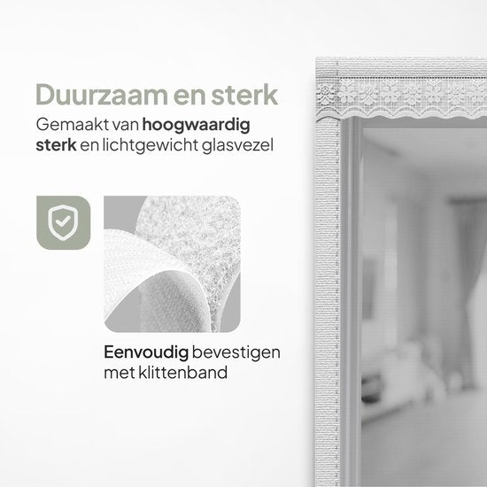 Ce rideau de porte est fabriqué en fibre de verre de haute qualité, ce qui lui confère un aspect élégant sans coutures visibles. La fibre de verre est non seulement ultralégère et solide, mais aussi durable, résistante au feu et protectrice contre les UV. Grâce à sa structure dense, le matériau laisse passer l'air tout en empêchant les insectes de pénétrer. Pratique, n'est-ce pas ?