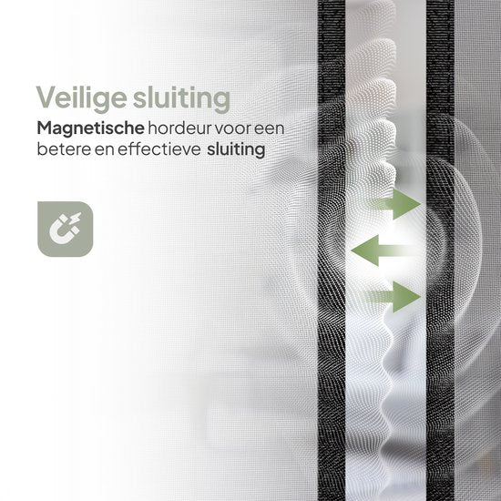 - Fermeture automatique grâce à 28 aimants puissants, placés stratégiquement des deux côtés du rideau.