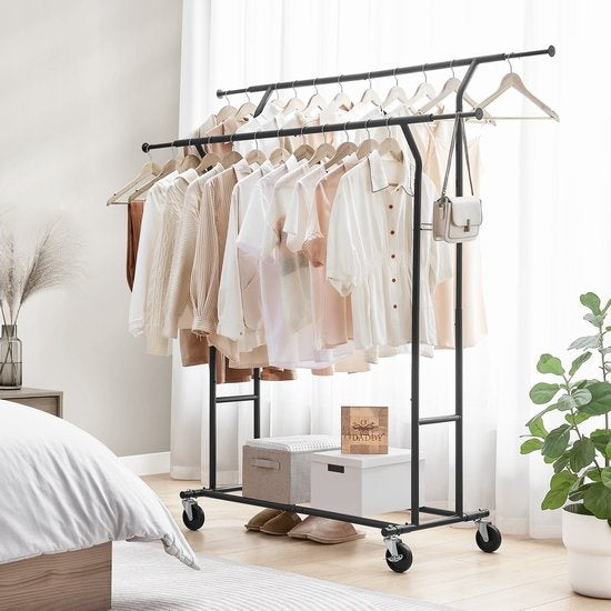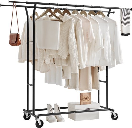 O'DADDY® Kledingrek op wieltjes - Garderoberek - Kledingstang - Verstelbaar en Uitschuifbaar - Industriële Wielen - Metaal - Stabiel tot 110 kg - Zwart