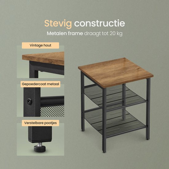 O'DADDY® Side Table Square - Tables d'appoint - Table de chevet - Table d'appoint - Petite table banc - Tables basses - Table pour ordinateur portable - Table basse industrielle - Table - Tablettes à grille réglable - 40x40x55 cm - Vintage Brown/Black