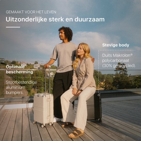 La qualité et la durabilité sont de la plus haute importance. La doublure intérieure est entièrement composée de matériaux écologiques et l'étui est en partie fabriqué à partir de matériaux recyclés. Chaque valise est garantie à vie, car nous croyons en des produits qui durent toute une vie. Ces valises sont soumises à des tests approfondis afin de toujours répondre aux normes de qualité les plus élevées."