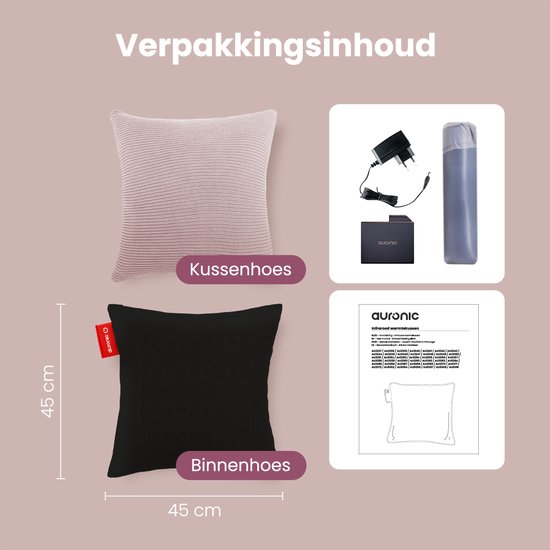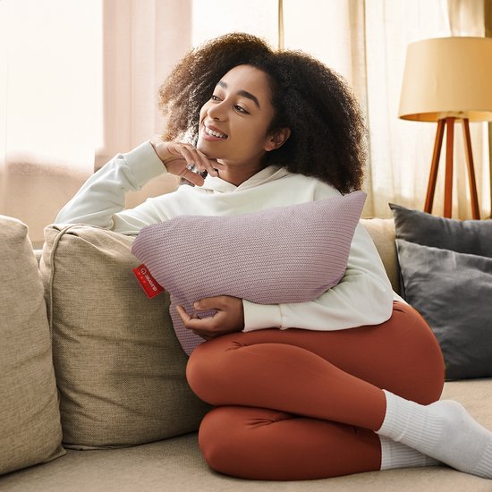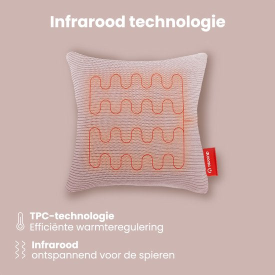 Auronic Oreiller chauffant - tricoté - 45x45 CM - Oreiller chauffant sans fil - rechargeable - Oreiller électrique - infrarouge - rose