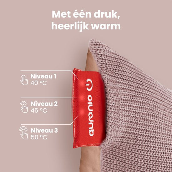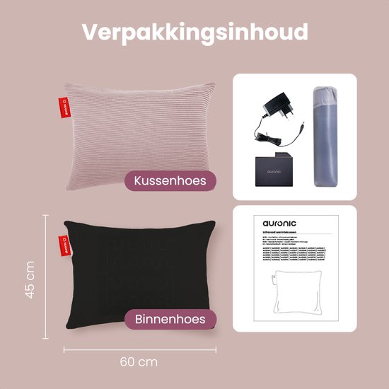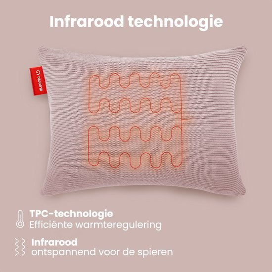 Auronic Oreiller chauffant - tricoté - 45x60 CM - Oreiller chauffant sans fil - rechargeable - Oreiller électrique - infrarouge - rose