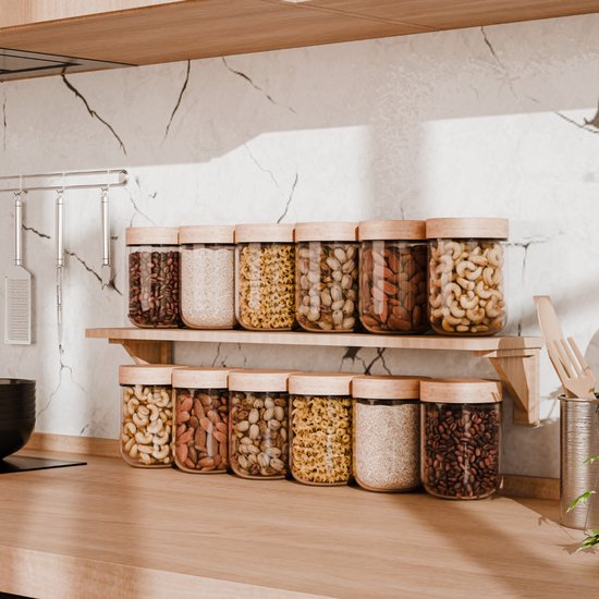 Organess Pots de conservation couvercle en bambou - 6 pièces - Verre avec couvercle - Pots à bonbons - Pots de conservation en verre