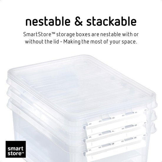Rangement optimal: La boîte est empilable avec le couvercle et nestable sans le couvercle, ce qui vous permet de gagner un maximum de place lorsque vous la combinez avec d'autres boîtes.