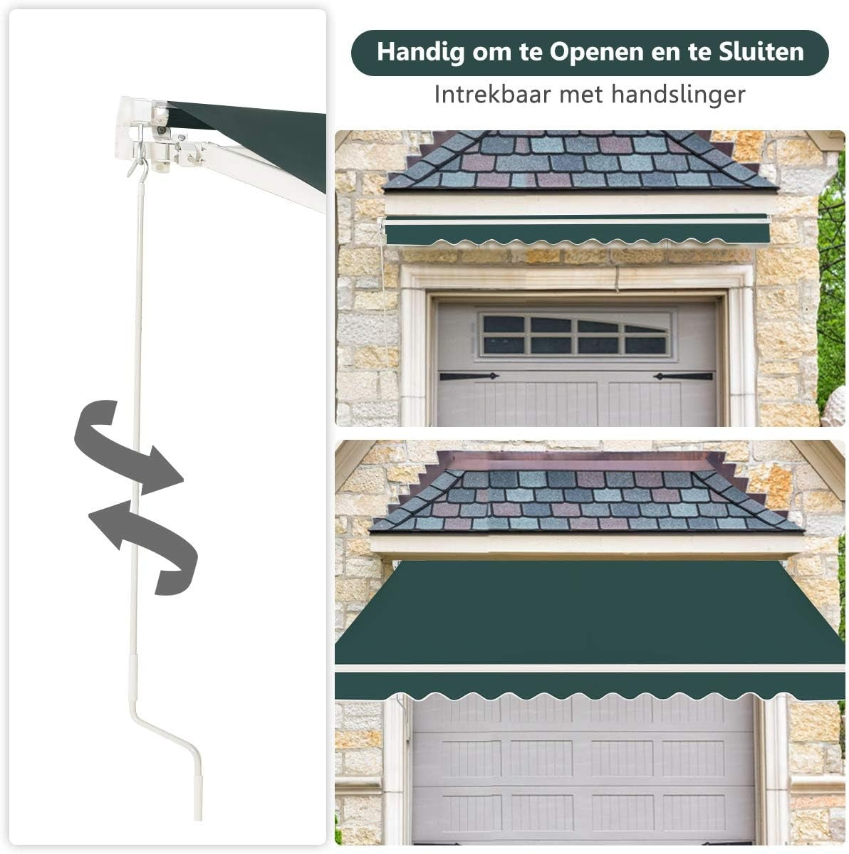 - Longue manivelle pour vous aider à ouvrir et fermer l'auvent facilement