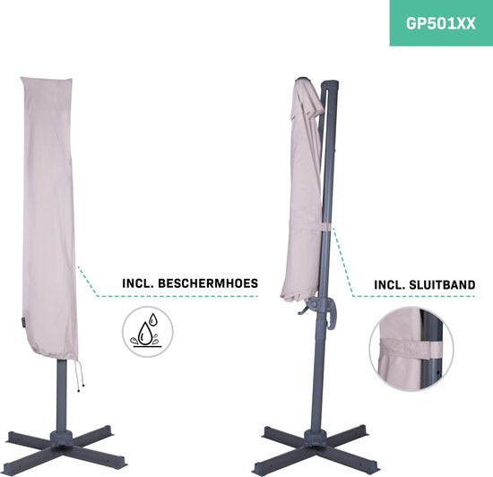 Nous offrons également la possibilité de commander le parasol et les tuiles en tant qu'ensemble ! Voir l'article : Parasol suspendu Bardolino Ø300cm - Parasol Premium - Beige | Inclut 4 tuiles à remplir (GP501XX BEIGE C2)