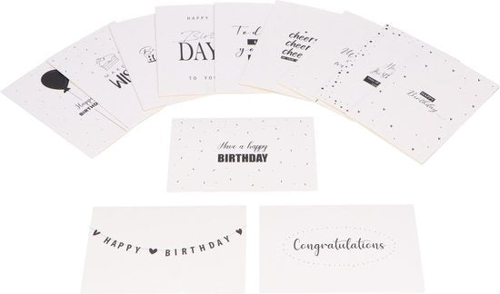 Partizzle 36x Cartes d'anniversaire avec enveloppe - Noir et blanc - Envoyer une carte d'anniversaire - Adultes - Durable - 15x10 cm / Minimaliste